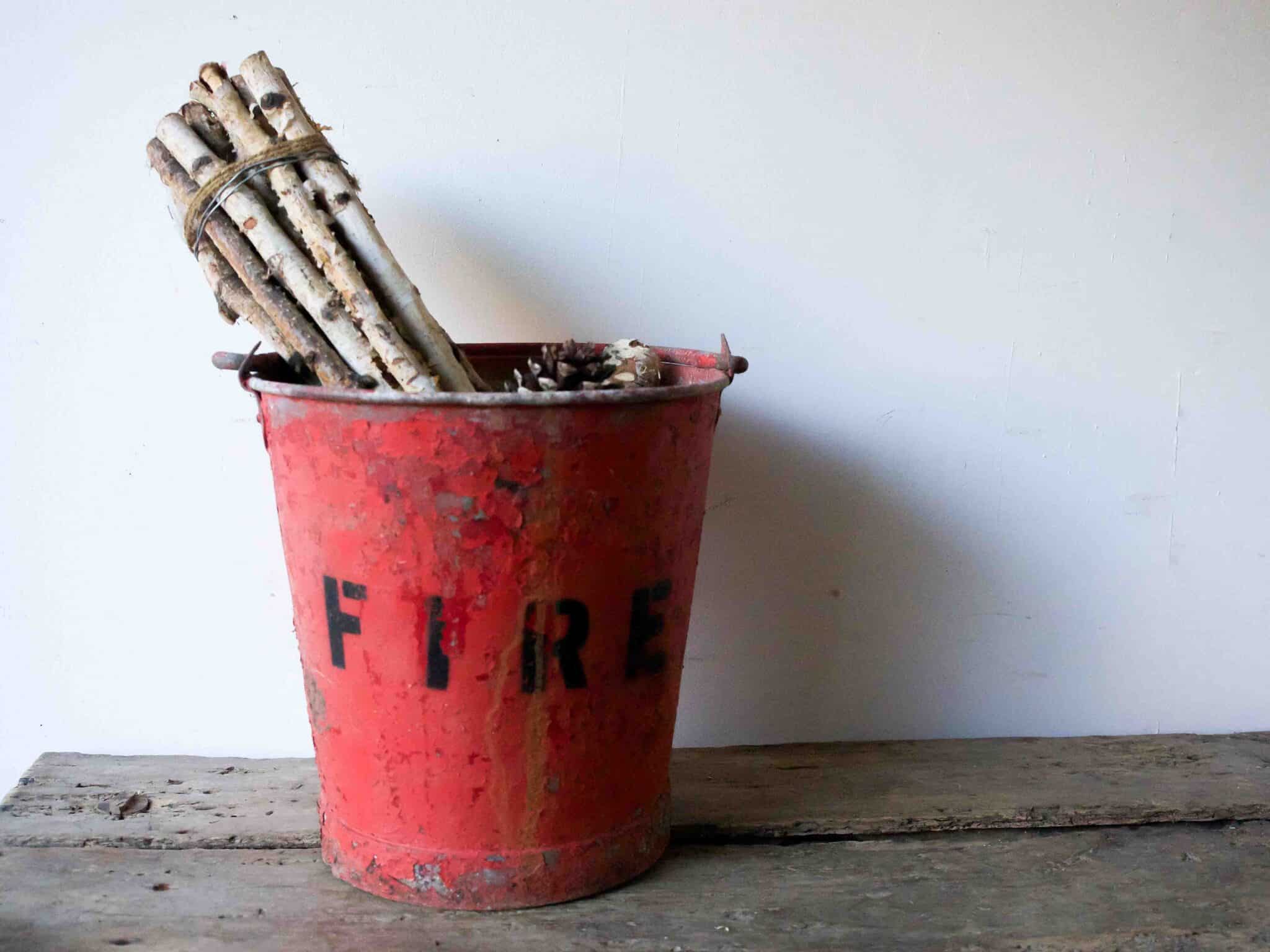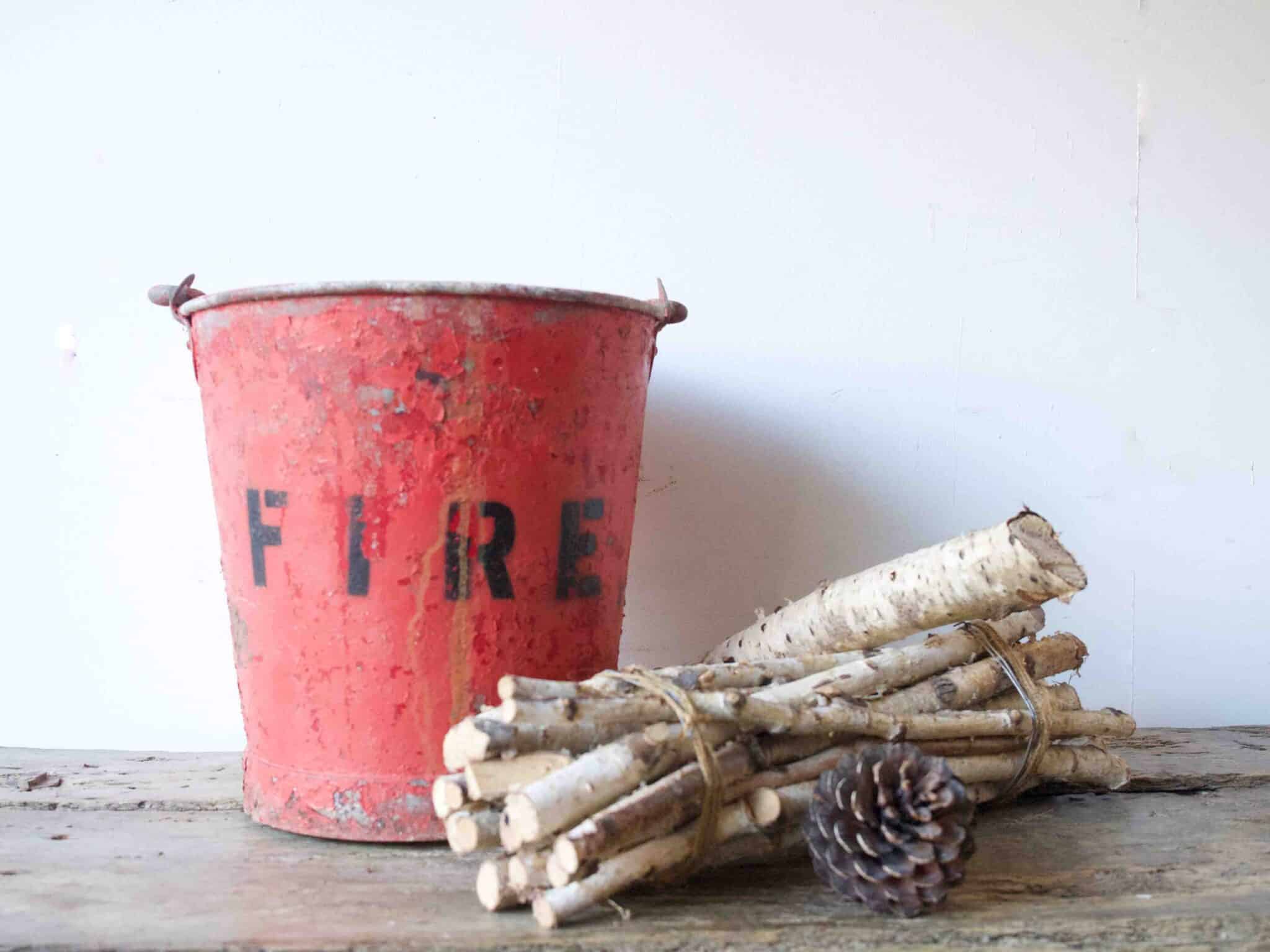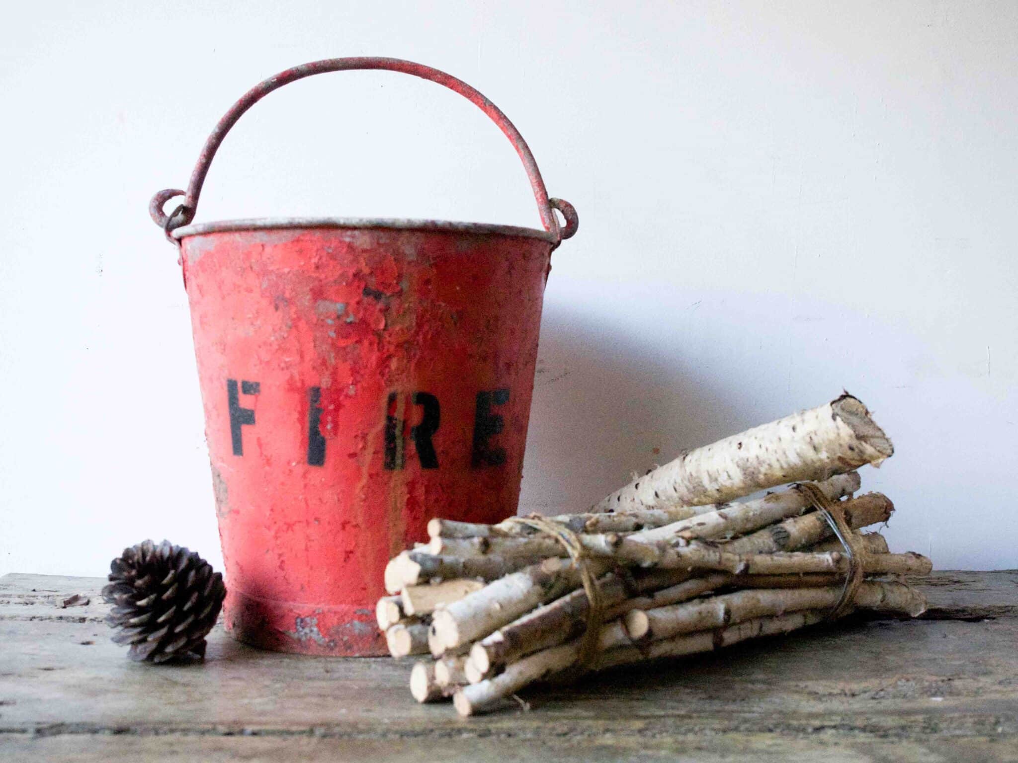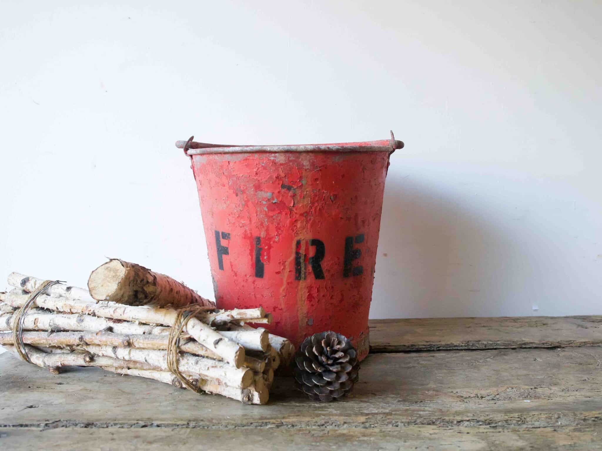 A red vintage fire bucket originally sourced from a military building. Layers of beautifully worn, chippy red paint give this piece an authentic, timeworn character. Perfect styled on a hearth as a coal bucket, it’s full of charm and makes an effortlessly cool statement in any interior.